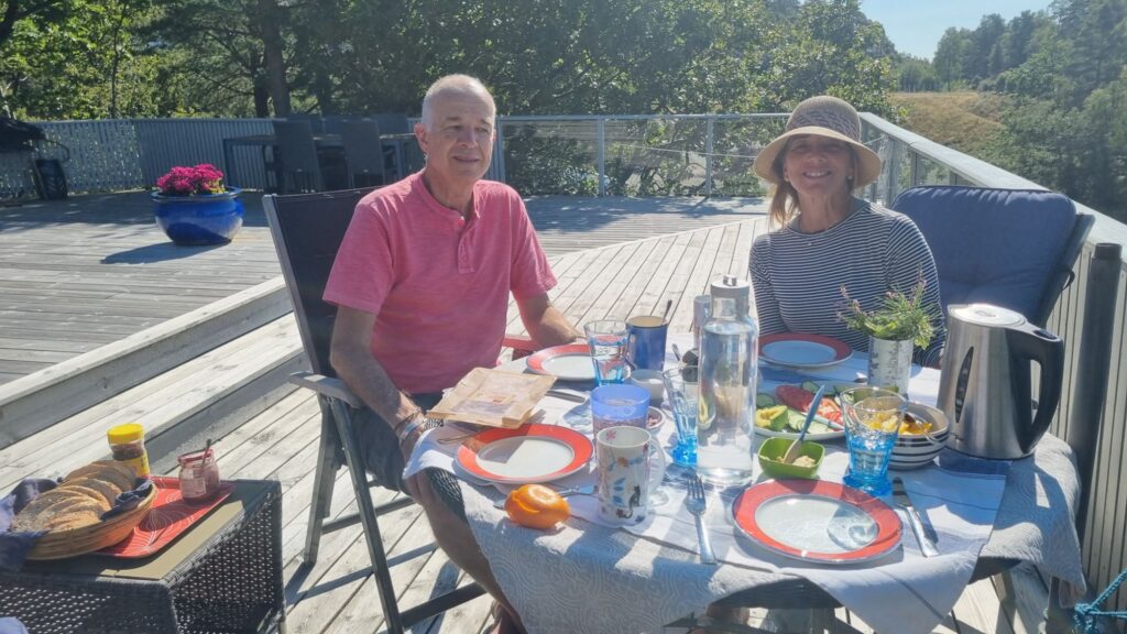 Phillippe og Sonia på terrassen. Sommeren er langt fra over.